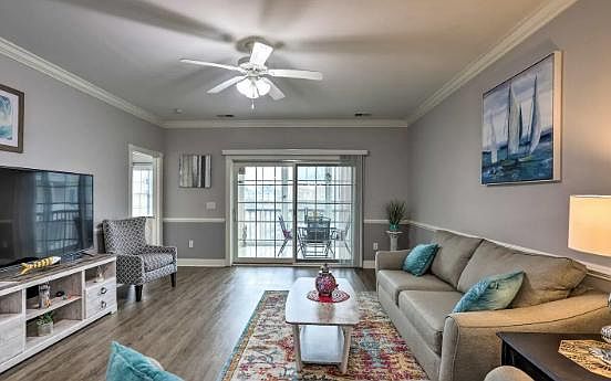 Furnished condo in Magnolia Pointe is available 2/16/21! 3 bed/ 2 bath. Furniture included. Stainless steel appliances. 3rd level w/ elevator access. All utilities included. NEIGHBORHOOD: Swimming pools, grilling area, walking trails, Myrtlewood golf course, safe neighborhood with security on site INDOOR LIVING: Open concept, 4 flat-screen TVs, no carpet, end unit KITCHEN: Fully equipped, breakfast bar w/ seating, ample cabinet and counter top space GENERAL: Free WiFi, 2 bathrooms, washer/dryer, linens/towels, hair dryer, new HVAC, keyless entry, 3rd floor unit with elevator access, crib & high chair are available upon request PETS: trained small dogs allowed only BEACH: 2.5 miles away (8 min drive) PARKING: Open parking lot (NO motorcycles, trailers or RVs) Monthly or long term rental available. Great for snow birds, remote workers or those building a home in the area. No parties. No smoking. No motorcycles, RV or trailers. Application with credit check required!