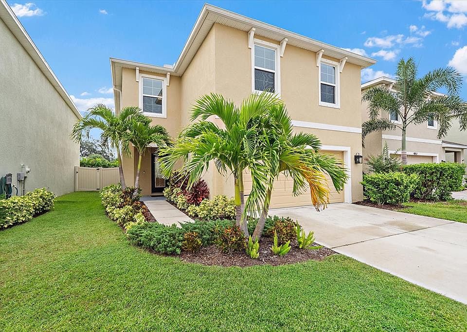 Welcome to your slice of paradise in the charming Ashton Meadows community! This well appointed 4 bedroom, 2.5 bathroom home perfectly balances modern sophistication with cozy comfort across 2,027 sq ft of thoughtfully designed living space. No CDD and low HOA. The heart of this home is undoubtedly the newly updated kitchen – a culinary enthusiast's dream featuring sleek granite countertops, stylish backsplash, and a spacious island adorned with custom tilework. With ample cabinetry and a convenient pantry, even the most ambitious cooking adventures will feel effortless. The open floor plan seamlessly connects the kitchen to the living and dining areas, creating an inviting atmosphere perfect for everything from casual family dinners to memorable gatherings with friends. Step outside into your private backyard oasis, complete with a fully fenced yard that offers both security and serenity. The expansive green space beckons for outdoor activities, while the patio provides the ideal setting for morning coffee or evening relaxation under the stars. Upstairs, you'll discover 4 generously sized bedrooms, including a primary suite that serves as your personal retreat. Complete with a walk-in closet featuring built-in organizers and an ensuite bathroom with additional storage, it's designed for both comfort and practicality. Walking distance to 2 A rated schools and the Legacy Trail, while a short drive to the world-famous Siesta Key Beach just six miles away, this home offers the perfect blend of convenience and coastal living that makes Sarasota so desirable.