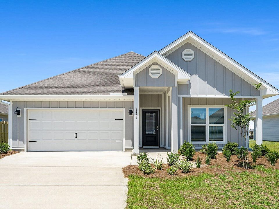 The Rhett floorplan is a 4-bedroom 2-bath, an open concept floor plan, with a boasting 1,835 sq.ft. The Rhett floorplan has upgraded finishes throughout. You will find 9-foot ceilings with 10-foot trays and beautiful crown molding. The Rhett also has EVP flooring, granite countertops, a large kitchen island with cabinetry on both sides underneath and brushed nickel hardware. This floorplan has energy efficient windows to allow lots of beautiful natural light. The primary bathroom has a beautiful garden tub, perfect for relaxing, and a spacious shower with a glass enclosure. Titus Park is in Panama City, Florida and is only minutes away from Tyndall Airforce Base! This large-scale multi-phase community is located off Highway 390 at Highway 231, centrally located for an abundance of shopping, restaurants, and great schools! Beautiful white sands beaches are just a short drive from your doorstep. Access the bay for fun and fishing by use of the public boat ramp only 3 miles away. There is a new Publix shopping center across the street from the community entrance. Titus Park highlights some of the most beautiful floorplans, which have amazing features.