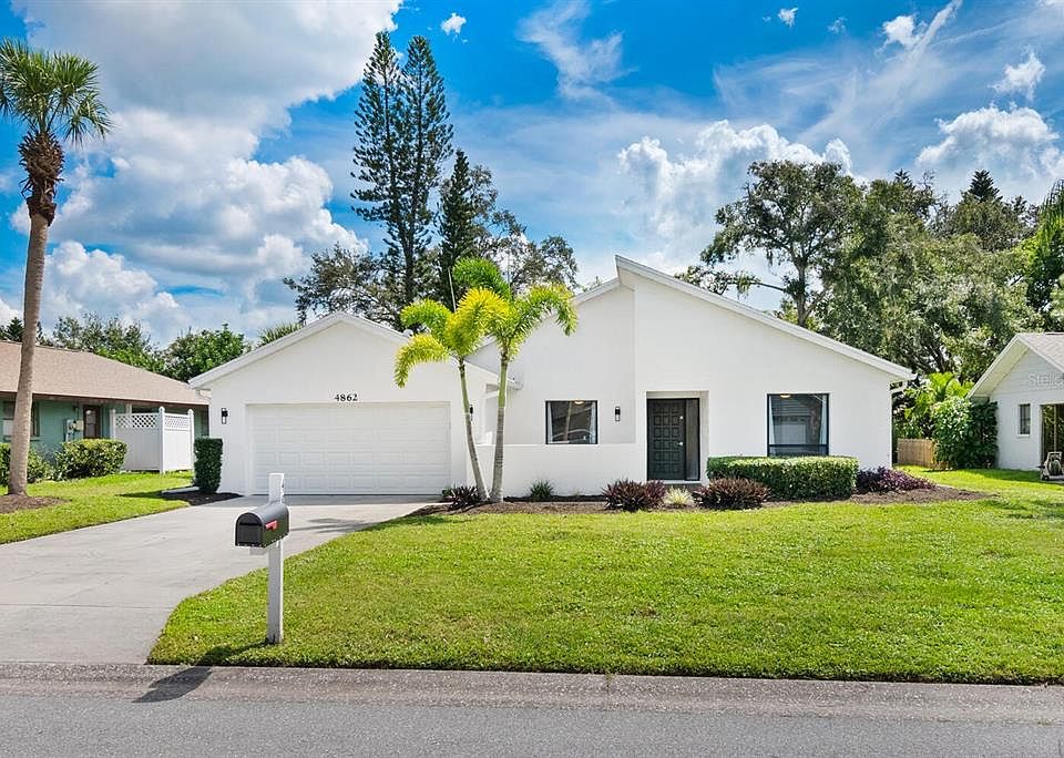 BUYER’S FINANCING FELL THROUGH. This lovely home is back on the market. Step into luxury with this completely renovated home in The Meadows! From top to bottom, every detail has been lovingly updated to create a light and bright oasis. Life-proof flooring, custom shiplap accents, and elegant granite countertops are just a few of the stunning features you'll find throughout. The kitchen and bathrooms boast soft-close cabinets, a marble backsplash, and stainless-steel appliances. But the beauty doesn't stop there - the roof was replaced in 2019 and the exterior was painted to perfection. And when you're ready to step outside, you'll be greeted by the incredible amenities of The Meadows community. With three golf courses, a fitness center, pool, tennis courts, and more, you'll never run out of ways to stay active and entertained. Plus, the location couldn't be better. Close to Benderson Park, the UTC mall, and downtown Sarasota, you'll have easy access to all the shopping and entertainment you could want. Don't miss your chance to call this stunning property home - schedule a showing today! Roof 2019; gutters 2023; hurricane garage door 2019; exterior painting 2023. Murphy bed in second bedroom, 2019.
