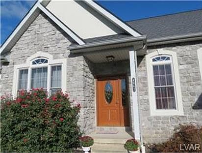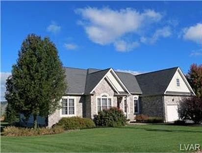 Unique Find in Center Valley! This stylish ranch home features 3 bedrooms and 2.5 baths, lovely dining room, a private study, open kitchen with sunny breakfast room, and a voluminous family room with an impressive fireplace. The master bedroom is refreshingly serene; its walk-in closet is abundant and the spacious master bath offers a jetted tub, a two seated shower, and dual vanities. The other two ample size bedrooms are located on the opposite side of the home and share the hall bath. Other amenities include a stamped concrete rear patio, and an attached two car garage. The basement and attic spaces are truly massive and could easily be finished for additional living space; the options are endless. Pride of ownership by the original owners is clearly evident. It is within minutes to the I78 and Route 309 thoroughfares, commerce centers, Promenade shops, restaurants, theaters, regional hospitals, and Southern Lehigh schools.