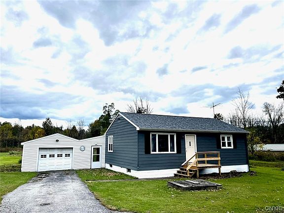 This adorable 2 or 3 bedroom Ranch has a beautiful eat-in kitchen with grey cabinetry, stainless appliances and plank laminate floor! Living room! Dining room or den! 2 bedrooms - the 3rd bedroom could be used a family room or as a primary bedroom with bath off of it! Laundry room with washer and dryer! City water! 1 stall detached garage! 3 year old roof! Newer front and rear steps! 2 updated baths. Updated light fixtures! Newer flooring throughout! Nestled on a large lot of .919 +/- acre!