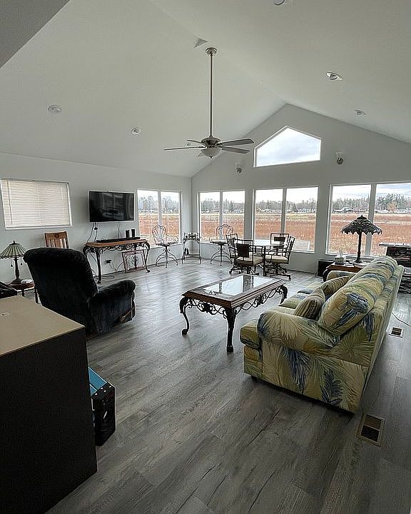 Complete rebuild from foundation up. 3 bedroom, 2 bath home on the main part of all sports Wixom Lake. Nice sandy waters edge, wood seawall & included dock. Open floor plan with panoramic water views from the living rooms floor to ceiling windows and beautiful sunrises. Tiered decking (16x16 & 10x10) off the living room easily accessed by a slider door. Walk out basement with slider door off the master bedroom. New natural gas forced air furnace and air conditioning, roof, insulation, vinyl siding, windows, sliding doors, electrical, new well and pump, plumbing, water softener and filter, hardwood floors, windows, kitchen, baths, drywall, ceiling fans and light fixtures throughout.