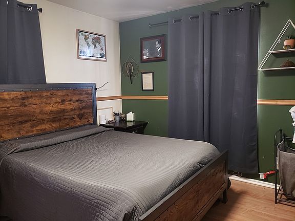 Spacious manufactured home on .6 acre corner lot. This home features 5 bedrooms and 2 bathrooms. Upstairs has a wood burning stove, movie room, and all 5 bedrooms. Downstairs has a laundry room and a storage room. The yard is partially fenced with large mature trees, storage shed and animal rights. Come take a look!