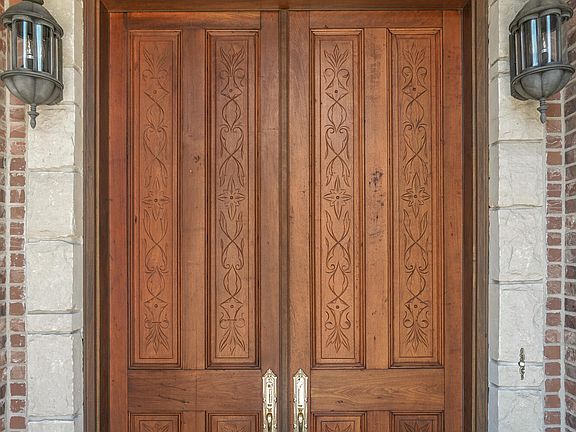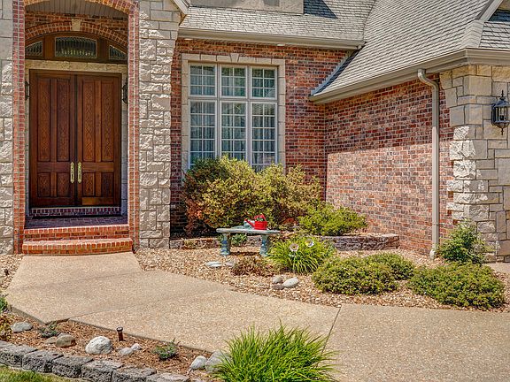 Desirable gated community. Real stone & brick exterior. 2x6 construction. Interior has antique beams & doors. Granite kitchen with hand-painted tumbled marble backsplash. 2 full kitchens, all bedrooms are large and with private full baths, 15x26 office, media room, exercise room, stamped concrete upper, covered deck, custom interior decor, beautiful front & back yard. You have to see this home to appreciate all of the amenities.