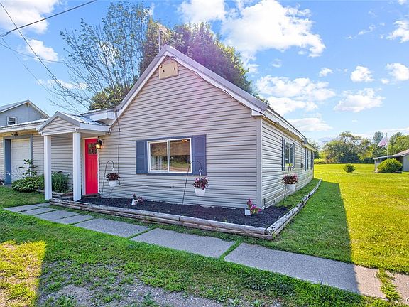 Adorable and pristine condition 2 bedroom 1 bath patio ranch home. Move in ready with new laminate wood flooring throughout. Large living room area with peek -a-boo window into the eat-in kitchen. Updated kitchen with painted cabinets- new hardware - new counters & sink- Walk-in pantry area. 1st floor laundry. Both bedrooms can accommodate full size beds & have large walk-in closets. Updated full bathroom area! Beautiful neutral color palettes. NEW metal roof- Central Air- entire new septic system and Insulation! Thick block walls make an efficient home in all seasons. 1 car attached garage with plenty of storage! Spacious shed for more storage! Beautiful 1.2 acre property with plenty of room to roam and enjoy the grape arbor!