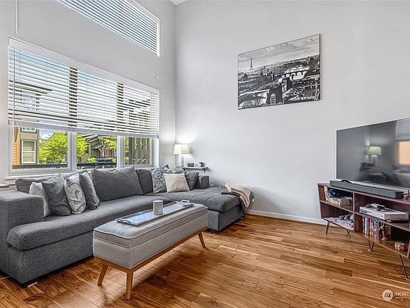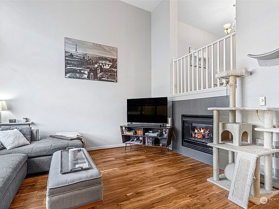 The heart of Harbour Pointe! Sleek, light, bright, desirable & updated townhome in the Camden at the Village Center. This home features a spacious floor plan, vaulted ceilings in the living room w/ fireplace, gorgeous newer engineered hardwood floors on the main, kitchen & den area, newer carpet throughout, updated paint, stainless steel appliances, granite center island, lots of cabinets, & desk/computer space off kitchen leads to a balcony. 2 nice sized ensuite bedrooms w/ vaulted ceilings in the primary, 2 balconies & a 1 car garage w/ additional pkg space, greenbelt views from back balcony. Excellent highly rated schools, walk to dining, shopping, coffee, close to fwy, Boeing, Paine Field, golfing, beaches, Mukilteo lighthouse & more.