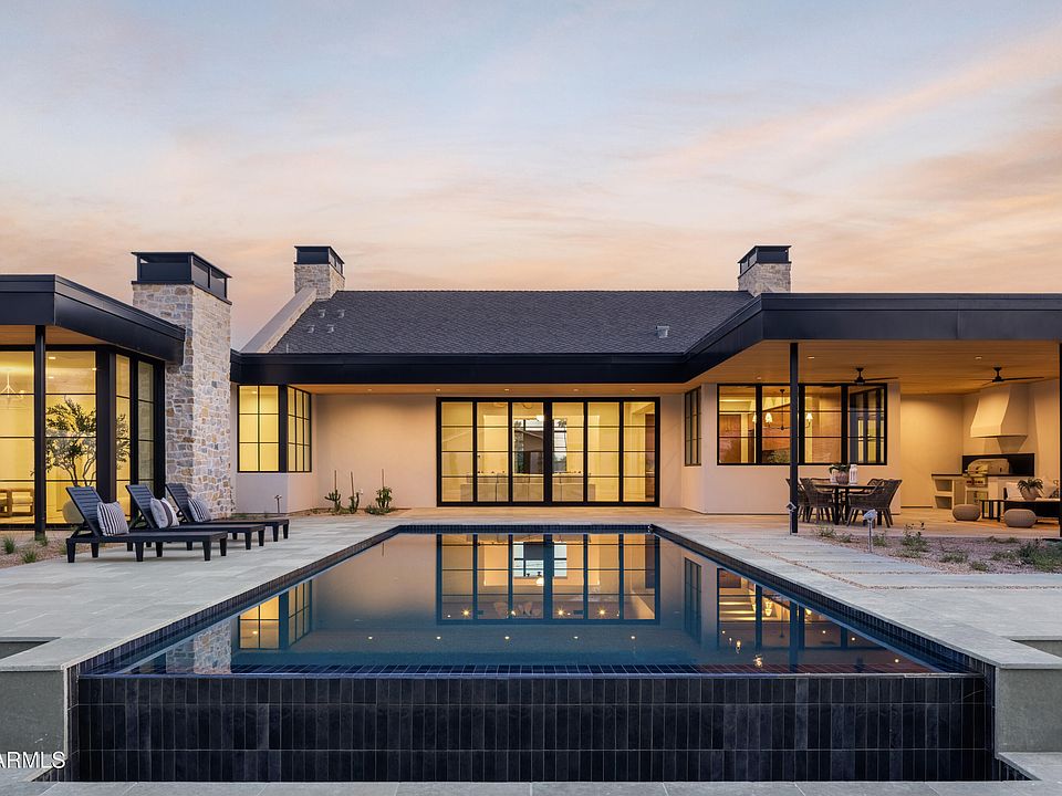 Completed June 2025 - Now Move-In Ready!!!!!! Brand new French Country-inspired estate by Two Hawks Design & Development in the heart of Arcadia. Sitting on .86 acres with 7,164 SF of living space, this timeless home blends classic European design with modern luxury. It features 5 bedrooms, 5.5 baths, 2 living areas, and 2 bonus rooms—plus a 4-car garage. Soaring ceilings and expansive windows frame Camelback Mountain views, while the resort-style backyard includes a pool, spa, lush landscaping, and pickleball court. Optional plans for a guest house or pool cabana available. A rare, fully finished masterpiece ready for its first owner.