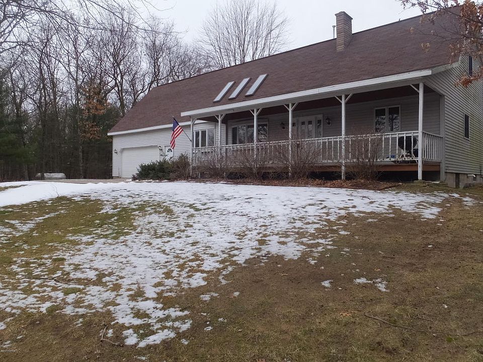 Relax on the covered front porch while enjoying amazing views of the Muskegon River flats! Large kitchen with lots of cabinetry, huge living room with cozy gas log fireplace, cathedral ceilings, and skylights that let natural light pour into the home. Large Master bedroom with walk-in closet. Four total bedrooms, two full baths, and a unique Loft living area overlooking the main floor. Seven acres, a second 28x40 detached garage with 12' ceiling, high efficiency furnace, central air and central vacuum make this home a great value! Buyer to verify all information.