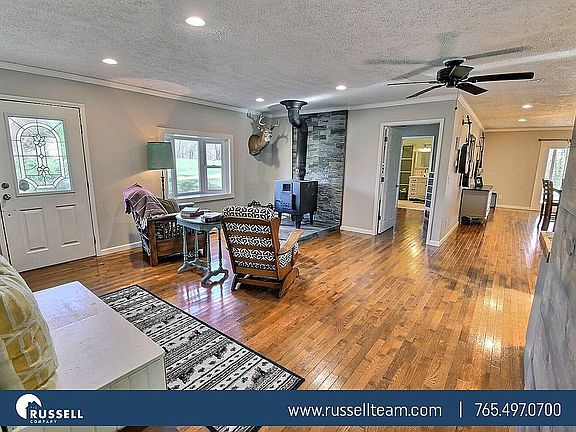 Cute ranch with many updates! Charming with open-concept living area featuring hardwood flooring, wood burning stove. Gorgeous modern farmhouse kitchen complete with subway tile, stainless sink, wood block counters and great kitchen island with breakfast bar! Separate family room with wood burning insert fireplace. Main floor master suite with spacious, updated bath and large laundry room. You'll find a cozy covered porch overlooking the nearly 2 acre lot filled with mature trees. Peaceful rural setting just minutes to town!