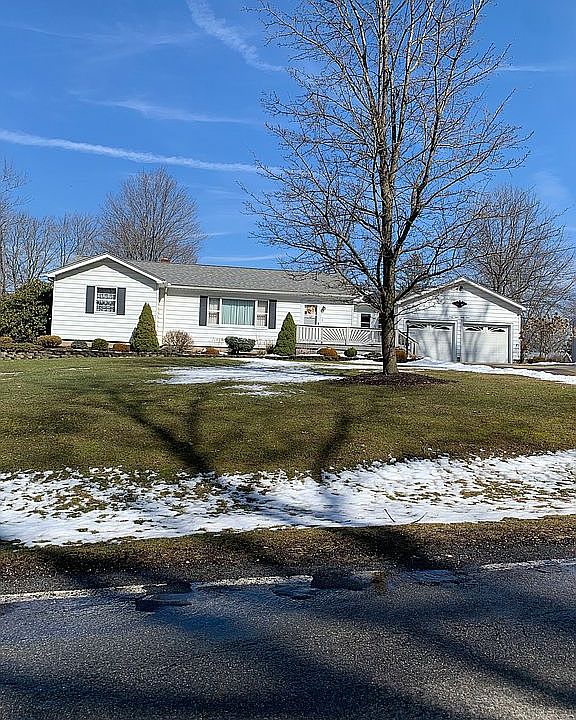 Ranch home built in 1958 on 1.27 acres. There are 3 bedrooms all with hardwood floors and 1 1/2 baths. The house has an enclosed sunroom, outside deck overlooking a beautiful pond, full basement, 4 car garage and a concrete driveway. It also has AC, gas heat, city sewer and private well water.