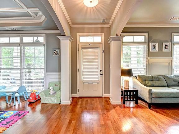 Charming traditional w/rocking chair front porch * Open and spacious floorplan * Coffered ceilings * Wainscotting in DR & LR/Study * Two story family room * Hardwoods thruoughout main * Kitchen w/granite and SS appliances * Oversized master w/sitting room, large walk in closet and private covered veranda w/ceiling fan * Updated lighting * New Roof in 2016 * Active HOA with Swim & Tennis *