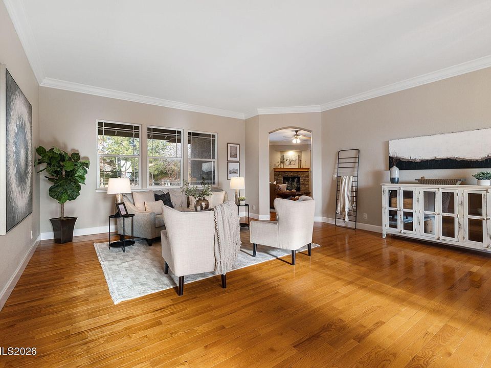 BRAND NEW STAINLESS APPLIANCES TO BE INSTALLED IN THE KITCHEN. Kitchen photos have been edited to reflect what it will look like but does not reflect the current/brand of appliances to be installed in the kitchen. From the moment you walk in you can feel the pride of ownership. Located behind the gates of Mountainshyre in the sought-after neighborhood of Caughlin Ranch, this beautiful single-story home offers an ideal layout with the primary suite thoughtfully separated from the remaining bedrooms. Featuring 4 bedrooms plus an office, 2.5 baths, and 3 car garage the home is designed for both comfort and functionality. The kitchen is a chef's dream with double ovens, multiple sinks, a butler's pantry, ample prep space, breakfast nook, and breakfast bar. The laundry room doubles as a mudroom and includes its own sink for added convenience. Additional features include fresh paint and crown molding throughout, wood floors, central vacuum, a new hot water heater, and a spacious primary suite with a huge walk-in closet. Step outside to discover a private garden oasis - immaculately maintained with lush landscaping, a large patio, and grass. The backyard is fully fenced, stubbed for a gas BBQ, and perfect for peaceful relaxation or entertaining. Enjoy scenic walking trails right in the neighborhood, and take advantage of the home's central location, just minutes from the Reno-Tahoe Airport, shopping, dining, and more.