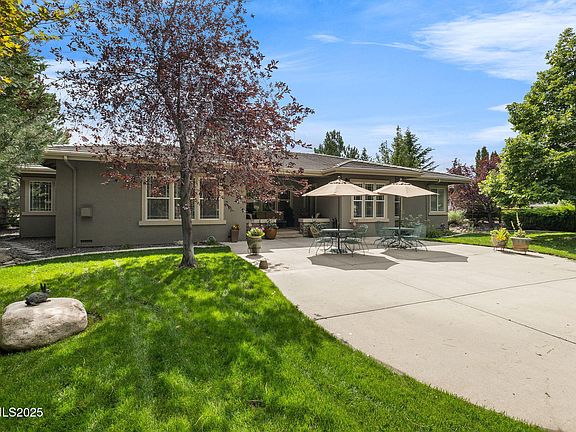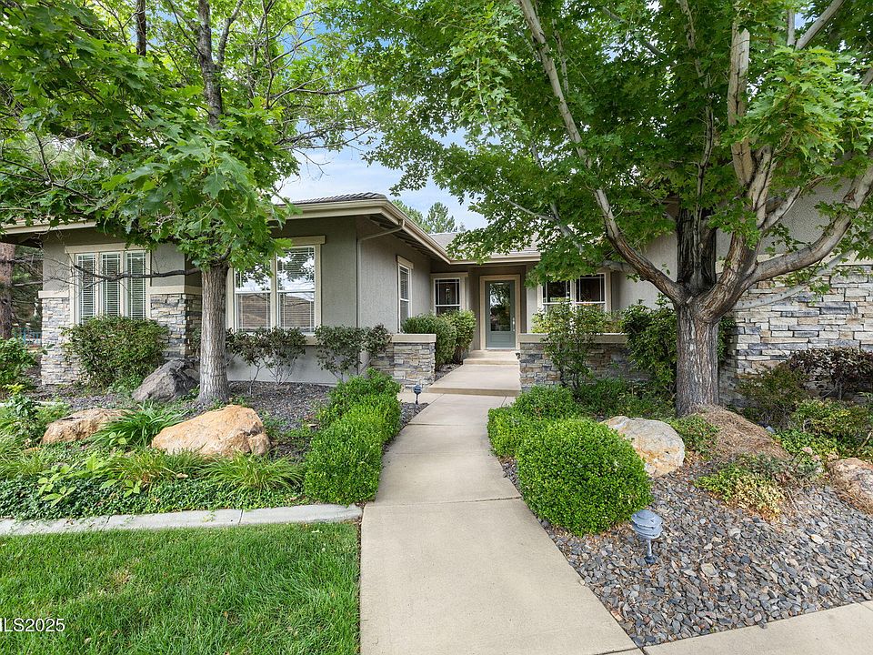From the moment you walk in you can feel the pride of ownership. Located behind the gates of Mountainshye in the sought-after neighborhood of Caughlin Ranch, this beautiful single-story home offers an ideal layout with the primary suite thoughtfully separated from the remaining bedrooms. Featuring 4 bedrooms plus an office, 2.5 baths, and 3 car garage the home is designed for both comfort and functionality. The kitchen is a chef's dream with double ovens, multiple sinks, a butler's pantry, ample prep space, breakfast nook, and breakfast bar. The laundry room doubles as a mudroom and includes its own sink for added convenience. Additional features include wood floors, crown molding throughout, central vacuum, a new hot water heater, and a spacious primary suite with a huge walk-in closet. Step outside to discover a private garden oasis - immaculately maintained with lush landscaping, a large patio, and grass. The backyard is fully fenced, stubbed for a gas BBQ, and perfect for peaceful relaxation or entertaining. Enjoy scenic walking trails right in the neighborhood, and take advantage of the home's central location, just minutes from the Reno-Tahoe Airport, shopping, dining, and more.