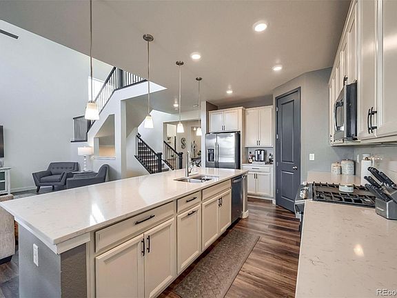 Welcome to this beautiful home located in the highly desirable neighborhood, Willow Bend. The kitchen features stainless steel appliances, beautiful quartz countertops, a timeless backsplash, and upgraded cabinetry. On the main level you will find a large office with glass French doors. Settle into your two story living room with and an abundance of natural light. The living room also features a gas fireplace for those cold snowy nights. This home is made for entertainment with its spacious and open floor-plan with many impressive upgrades. Head out back to your covered deck featuring a brand new hot tub (included) and television to relax after a long day and overlook your fully landscaped, fenced in, back yard. Head upstairs where you will find three bedrooms, two bathrooms (one Jack and Jill) and your spacious primary bedroom with an en-suite. Two large walk in closets are perfect for storage! The laundry room is conveniently located next to your bedrooms. In the basement you will find 1,252 sq. ft. of unfinished area that you will be able to customize- there is plenty of space for an additional bedroom, bathroom, and recreational area. All of this in an incredible location! Minutes away from the Premium Outlets, I-25, The Orchard Town Center, shopping, dining, and lots of parks and walking trails. This home has been meticulously maintained and is better than new!