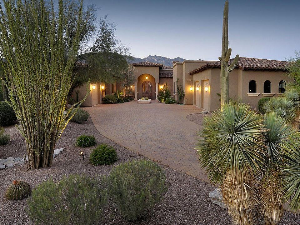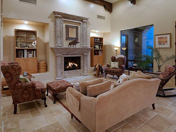 For more information on this property, contact the Listing Agent, Jan and Kandy at (520) 403-1000 or jankandy@mindspring.com. Elegant home built in 2007 by GDV Homes on pretty mountain view lot in gated Villa Toscana! Architecturally beautiful design and fabulous floor plan. Exceptional finishes through out: natural stone floors, gorgeous tile detail, granite counters, stunning cabinetry, top of the line kitchen including 2 dishwashers, chef's gas range+ built in microwave & oven. This home has wonderful space for everyone, large rooms, huge closets & excellent storage. Separate guest quarters has it's own entrance. Activity room, plus family room &built in wine/bar room. Oversized garages. Charming paver driveway w/ lush planting & water feature welcomes you to the home. Spacious backyard has a lovely pool, elevated spa, waterfall, outdoor fireplace, gazebo & built in BBQ. Perfect! Like new!