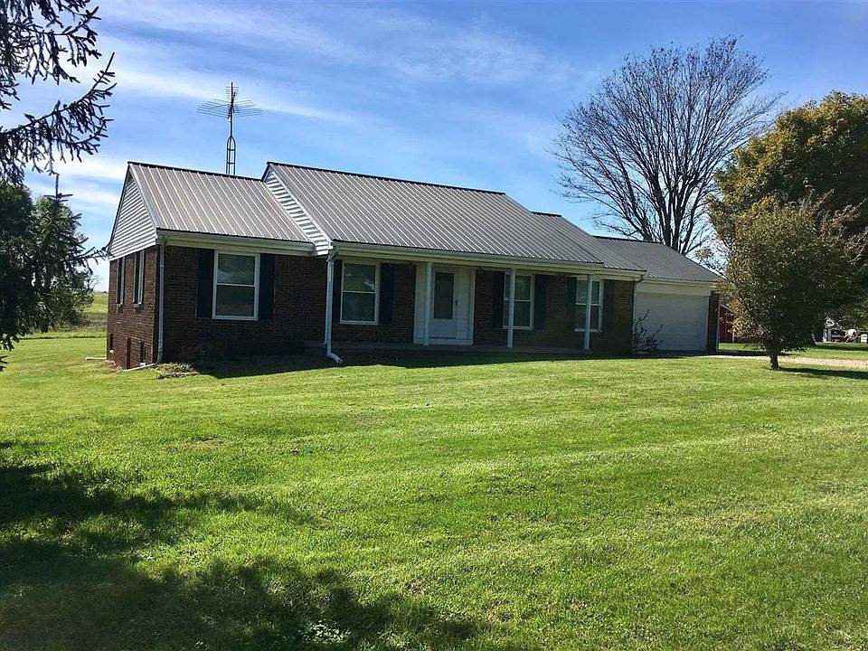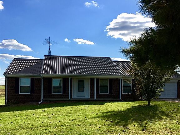 How about a new home for Christmas! This charming brick ranch home on 4.989 acres with an attached 2 car garage. There are 3 bedrooms and 2 baths that has been newly painted. This home also has a large covered patio, front porch and 360 sq. ft. of cellar/basement area. It has and outside door for a storm shelter with a concrete floor the rest of foundation is a crawl space. Also included is the barn. Property has been survey recently.