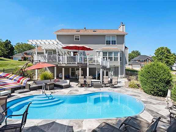 Amazing 2-story home in prime location on 1/3 acre lot w/PRIVATE INGROUND SALTWATER POOL backing to hole #3 on Whitmoor Country Club's North Course! Highlands subdivision & Francis Howell School District w/ over 3,000 sf of living space! Beautiful hardwoods flow through formal dining & living rooms! Modern kitchen w/quartz counters, center island w/ breakfast bar, ample cabinet space, w/view of gorgeous backyard oasis! Family room features a gas fireplace and custom built in shelving. Main floor laundry room & a half bath complete the main level! Upstairs find 3 spacious bedrooms, updated hall bath & owner suite w/walk-in closet & private en suite w/dual sinks and a shower that is sure to impress! Finished walk-out lower level has a 1/2 bath rec room, family room & plenty of storage. The backyard is a one-of-a-kind find w/ pool, large deck, patio area all backing to Whitmoor Country Club! Be sure to check supplements for full list of updates as there are too many to list!