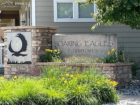 Located in the Soaring Eagles community near schools and services, this clean and bright, centrally located, spacious 3 bed, 2 1/2 bath townhome offers 2 car garage, fireplace and NEWER central air conditioning to keep you cool in these ward summer days! Just a short commute to freeway, Ft. Carson and airport. Close to neighborhood playground and surrounded by lovely shade trees and greenbelts. Cozy porch to welcome the day and private deck to the rear. Come take a look!