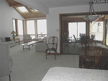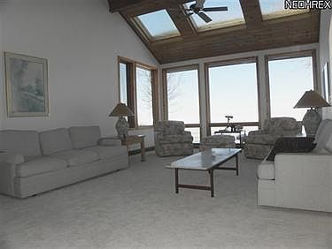 Seller will consider a concurrency contract subject to sale of buyer's home.Fabulous Lakefront property with contemporary flair on 1.42 acre offers natural light & beautiful views from abundant windows all rooms! 2-stry vlted living room/great room w/brand new carpet gas FP & newer wall of windows beautifully frames the changing seasons of Lake Erie.Kitchen w/terra cotta tile flooring new stainless appl. and stunning granite is open to dining room offers views of lake.Glass sliders lead to vaulted 3 season room w/access to backyard and lake.1st floor master (currently used as den) with attached bath. 2 additional bedrooms w/enclosed balcony on 2nd floor. 164 width on Lake Road and Lake Erie. Gentle slope to waters' edge w/full erosion protection.Break wall along entire back of lot with additional rocks. 12' wide boat ramp accommodates boats, jet ski, sea doos, etc. Newer shingles, furnace, CA. Property consists of 2 lots - 1 occupies by house and a second lot.Exceptional Val