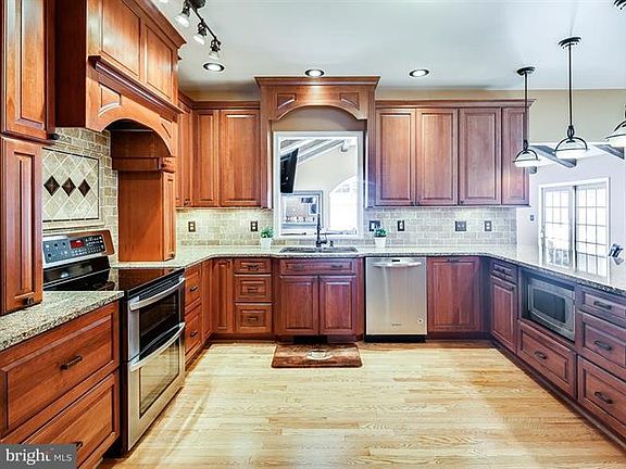Stunning from end to end, this custom-built colonial beauty is ideally situated in the heart of Mount Airy! As soon as you make your way past the stately, distinctive front elevation, you are welcomed inside by gleaming hardwood floors and an impressive two-story entry foyer. This kitchen is outfitted with sparkling granite counters, stainless steel appliances, and abundant custom wood cabinetry. The main level is completed by a laundry room with a sink and storage shelves, a sunroom and a bedroom suite with a full bath. On the upper level, enjoy the owner s suite, boasting an oversized walk-in closet and stunning owner s bath. With a spa-like aesthetic, this bath is sure to impress with its modern tilework, stone feature wall, garden soaking tub, and separate shower. The secondary bedrooms are spacious and serviced by an updated full hall bath. Finally, enjoy flexible space in the finished lower level, which features a media room with built-in surround sound, a wet dry bar with a fridge, an exercise room, a custom wine cellar, and a convenient sixth bedroom and full bath. Enjoy a dip in the pristine in-ground pool, or relax beneath the gazebo with serene views. The fire pit and patio are perfect for cook-outs and gatherings, with a hot tub to enjoy as the weather cools down. With a home warranty for your peace of mind, this one truly has it all!