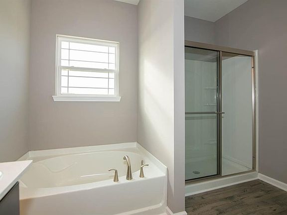 New construction by D.R. Horton! Welcome to the Grandover in Centennial North. This single story home features 3 bedrooms, 2.5 baths, dining area, 3 car garage & brick wrap. Entertaining is a breeze in the beautiful kitchen with large island and walk-in pantry. Retreat to the primary bedroom suite which features a walk-in closet, double bowl vanity & large shower. Home includes America's Smart Home® technology. Located in Sugar Creek Township. Enjoy planned biking and walking paths throughout the town and the community’s proximity to major roads for easy commutes.