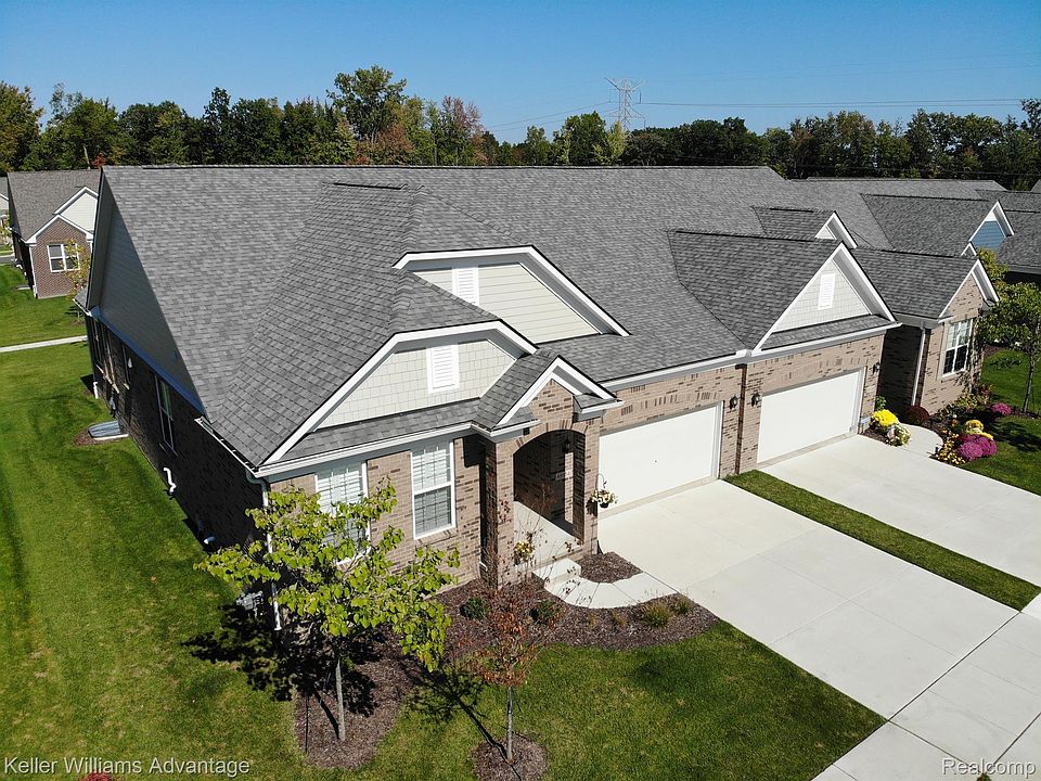 Step into this pristine end-unit ranch condo within the Villas of Stonebrook community! The lovely layout of the two-bedroom, two-full bathroom property features a flex room/study with French doors and has beautiful amenities throughout. The spacious eat-in kitchen features granite countertops, tiled backsplash, and premium cabinets seamlessly flowing into the great room with cathedral ceilings and a cozy gas fireplace. Enjoy the convenience of a two-car attached garage with an epoxy-finished garage floor and first-floor laundry. The primary bedroom boasts a luxurious attached full bathroom with a convenient walk-in shower, a euro-glass door, and a spacious walk-in closet. Hardwood flooring and ample closet space throughout add to the charm. Other notable updates include ceiling fans, plantation shutters, and crown moldings. The full unfinished basement offers the potential for expansion of additional living space. Relax in the four-season room off the kitchen or on the new Trex deck protected from the western sunset to enjoy the evenings in the cool shade overlooking the common areas. Take advantage of this opportunity to enjoy refined living in a serene location close to many amenities!