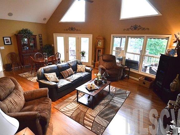 Beautiful, Custom Built Lakefront Home. Open Kitchen, Dining and Great Room combo. Triple French Doors off DR lead to Full Length Trek Deck with Shade Awning, where you can relax and enjoy the amazing lake views. Kitchen offers Granite Countertops, Eat at Bar, Tiled back splash, and lots of custom cabinetry. Vaulted GR with Gas Log FP. Lots of windows overlooking the lake, Dbl Ceiling Fans. Main Level Master Suite. Master Bath with Jetted Tub, Separate Tiled Shower, His and Her Vanities, and Large WIC. Laundry Room on Main with Cabinets & Shelving. Upstairs are Two Guest Bedrooms with Jack N Jill adjoining Full Bath. Full Unfinished Bsmt with Full Finished Bath. Also, plumbed for future Kitchen. Tons of Storage Shelves and Dbl Doors allow access for Lawn Equipment. Beautifully landscaped backyard. Nice Walkway to the Boat Dock complete with Boat Lift and 2 Jet Ski Pads. Gazebo with Electricity. Full House Generator can provide back up power source in case of power outage. Must See.