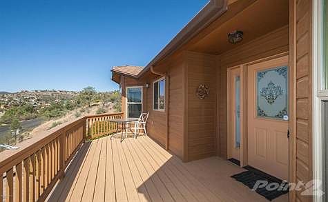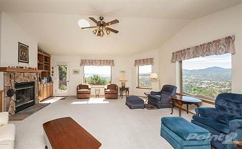 Views from everywhere!! Beautiful, well thought out floor plan takes advantage of the panoramic views from Mingus Mountain and across the Bradshaws. Light, bright and open. Large living room has picture windows, fireplace, built-in entertainment center and French door leading out to the picturesque outdoors. Functional kitchen has tons of cabinetry and storage. Viewing window located at the kitchen sink. Breakfast bar and dining room with views located just off kitchen. Spacious master bedroom also has private views and patio access; master bath with double sinks, extra vanity, shower and walk-in closet. Don''t miss the huge laundry room and office space with bookshelves. Home is located on a cul-de-sac and backs to greenbelt. Quiet neighborhood. Close to shopping.