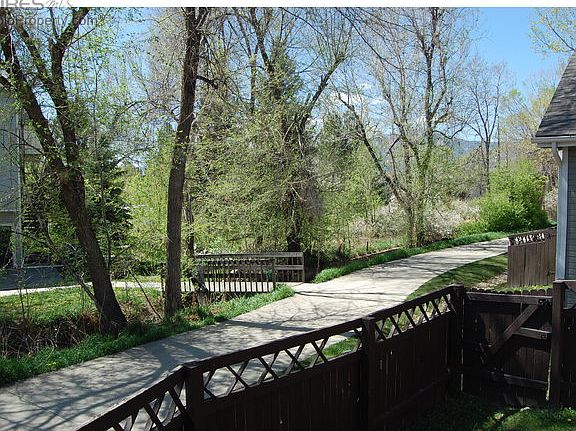 Sunny, spacious patio home with private fenced yard. Large airy upper level could be second master suite. Slab granite kitchen countertops, new windows in 2011 and newer copper plumbing. All appliances stay. 10x16 storage area is in basement. Two car detached garage is directly in front of home. Backs to bike path and creek. Southern exposure. Near parks, open space. Great location!