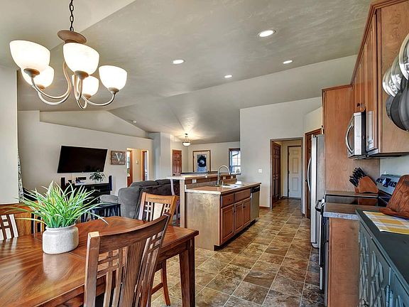 Beautiful open concept raised ranch in a great location! Great room with fireplace with vaulted ceilings opens up to kitchen with island and snack bar and walk-in pantry! Split bedroom with master suite hidden behind dining area by kitchen! Finished lower level theater room, rec room with wet bar, full bath and 4th bedroom! 1st floor laundry! Attached 2.5 stall garage. Fenced in backyard and deck with patio doors to dining! This home is a must see!