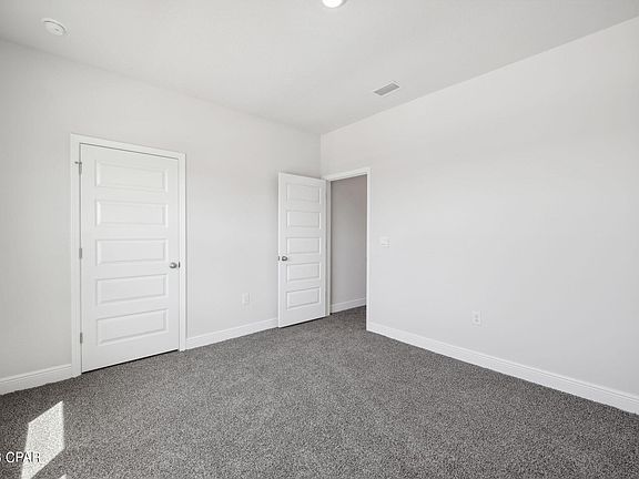 The Carol is a two-story detached home that is in the highly desirable community of Titus Park. Located on the north east side of Panama City, Titus Park is a short drive to downtown Panama City, the Gulf of Mexico with sugar sand beaches, Tyndall Air Force Base, shopping, dining, and more! The home has a private entrance with concrete pathway, steps, and designer landscaping. Inside, you are warmly greeted by engineered vinyl plank floors that lead you past a flex room and into a bright and open floor plan seamlessly connecting the kitchen and dining area to the living room. Behind the dining area is a door leading you to the inviting, sunny backyard that backs up to a common area. Meticulous attention to detail is presented in the kitchen with granite countertops, white cabinetry with brushed nickel knobs, and stainless steel Whirlpool appliances which includes the following: stove, dishwasher, and microwave. On the first floor there is also a guest bedroom and full bath with the additional bedrooms rooms on the second floor. Bedroom 1 is on the second floor of the home and has an adjoining bath that features a double sink vanity, garden tub and shower. New homes in Titus Park also feature a smart home system that includes a KiwkSet Keyless Entry, Skybell doorbell, automated front porch lighting, an Echo Dot, and a Qolsys touch pad, and customizable LED lighting.