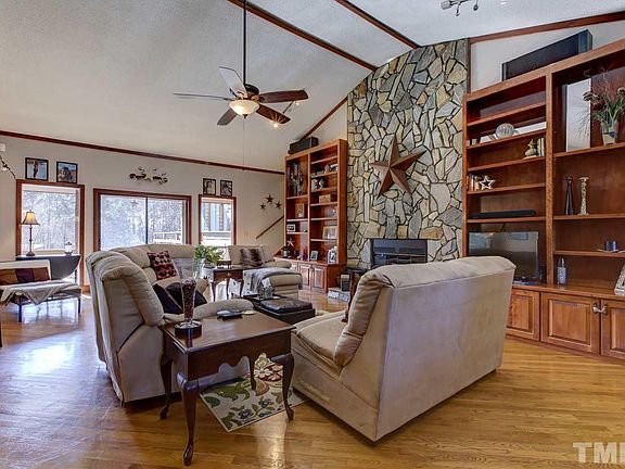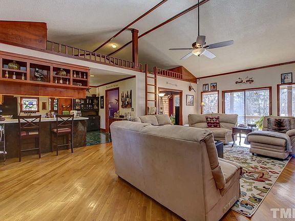 Log home on 1.038 acres near the Haw River no restrictions, no HOA! Finished basement would make great IN-LAW SUITE! 3 bedrooms on main level. fun loft area. Flex space could be used for 4th bedroom. Separate dining rm. Cathedral ceilings, gas fireplace. Swimming pool, large deck and patio for entertaining, new roof 2018. Convenient location, close to everything, easy access to 15-501 and Hwy 64. Jordan Lake state park nearby for boating and fishing! See virtual tour!