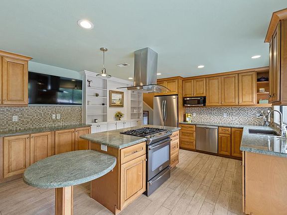 Cozy gas fireplaceExpansive backyard oasisAbundant natural lightMature palmsSoaring ceilingsOpen floor planStainless-steel appliances