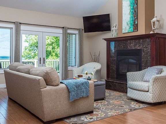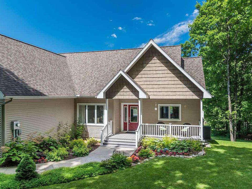 Custom built home with sweeping countryside and Crooked Lake views. This gorgeous home is situated at end of quiet cul-de-sac just moments from downtown Petoskey. The home features main floor living yet offers a fully finished, walk-out lower level complete with large family room, 2 bedrooms and bath. The main floor features a gourmet kitchen, stunning fireplace, vaulted ceiling, formal dining room and breakfast room. The main floor master bath was recently remodeled and includes a soaking tub, tile and glass shower and a stunning double vanity. Two additional bedrooms reside on the main floor and have a full bath in close proximity. The wrap around deck takes advantage of the panoramic views while morning coffee can be enjoyed on the covered front porch. This home includes a two-car attached garage and has a beautiful yard...