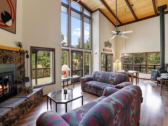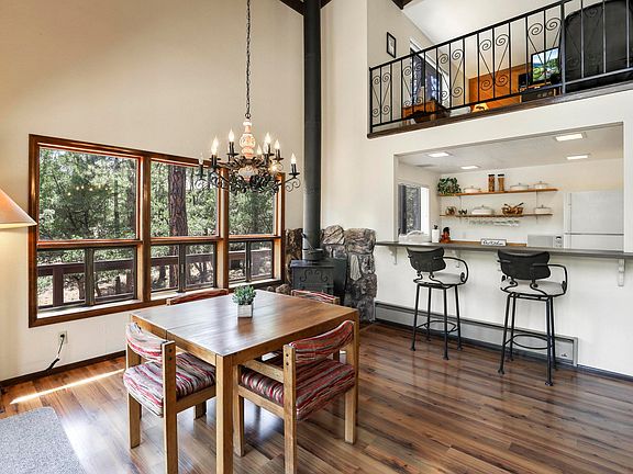 Very private cabin in the tall pines. This home sits on .65 acre toward the end of a cul-de-sac. All adjacent lots have homes already built, so no new homes will be built. Enjoy the sense of privacy as you sit on the back deck watching the sun rise and set or watching the wildlife wander by. Inside, the kitchen is open to the great room with a wall of windows to soak in the view. This charming cabin includes 2 bedrooms, 2 bathrooms with a loft and full laundry room. It's the perfect weekend get away or full time residence!