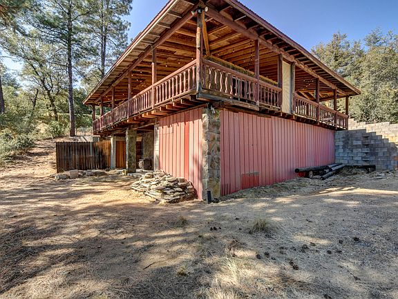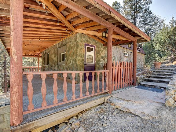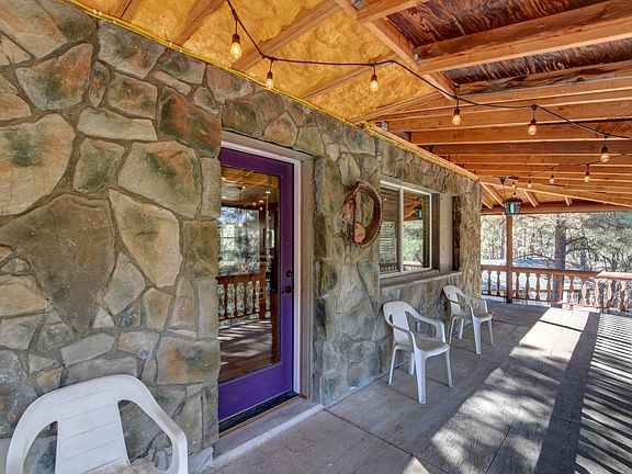 Stake your claim in Ponderosa Park! Own one of only ~240 homes in a National Forest inholding that used to be a mining claim. Ponderosa Park, established in 1884, is surrounded by tall pines and winding dirt forest service roads. Only 4 miles to downtown shops, restaurants, events! This 1560 sf 2 bedroom, 2 ba home was built in 1981. It features large front and back decks and two lower covered patios for enjoying the tall pines outdoors. Inside you'll find an open floorplan with wood floors, cozy wood burning stove, wood cabinets and SS appliances in the kitchen. Includes a large exterior storage space, and a large basement with a bath. Existing furnishings convey. Upstairs 2nd vanity does not work and will not be connected. Use caution, some doors lead nowhere.