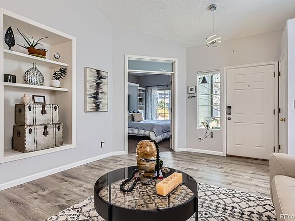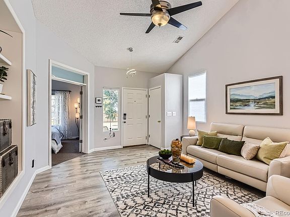 Welcome to this beautiful home offering single level living in the highly sought-after Highlands Ranch! With both style and functionality, this home features an upgraded kitchen with sleek white cabinets, beautiful quartz countertops accented by a glass tile backsplash and stainless steel appliances. With abundant cabinet and countertop space, as well as a pantry, this kitchen is a dream! The open-concept layout boasts high ceilings throughout, creating an airy and inviting atmosphere. The front bedroom features a Murphy bed and French doors, making it ideal for use as a home office or easily convertible into a cozy guest bedroom. The spacious primary bedroom is a retreat, complete with a large soaking tub, a generous walk-in closet, and fresh new paint. The remodeled secondary 3/4 bathroom features a large walk-in shower and tile floors. Throughout the home, you'll find updated LVP flooring and contemporary lighting accents that add a fresh, modern touch. For added convenience, a large hall closet comes with a beautiful barn door, providing both style and storage. The secluded backyard is low-maintenance and features a deck and firepit, perfect for enjoying peaceful outdoor evenings. A newer upgraded roof and exterior paint offer peace of mind for years to come! Located in a quiet area of Highlands Ranch, this home offers excellent access to all four community recreation centers, miles of scenic trails, and is just moments away from shopping and dining options. This beautiful home has it all — don’t miss out on the opportunity to make it yours!
