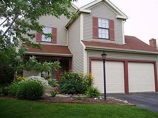 Lovely location-yard w/nature preserve behind!Bird watch from deck!Charming flower gardens & veggie garden!Great rm is very lrg w/brick fp,open to din rm.New carpet & fresh paint thru-out.Vaulted owner's suite.Lndry rm up.Full bsmnt w/ rough in ba & studs ready to fin.New gar doors.Bring offer-very motivated!