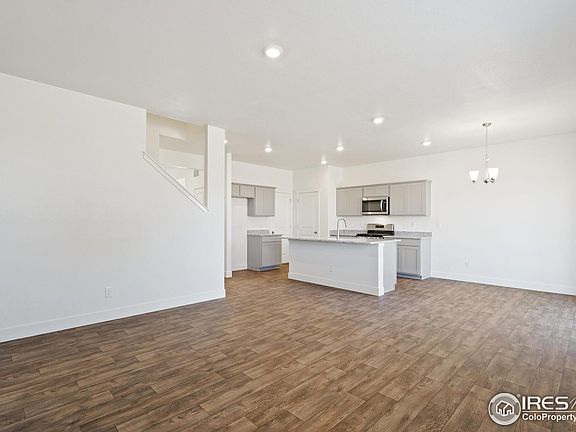 Welcome to the Henley, an impressive 5 bed, 3 bath home offering 2,652 sq ft of comfortable, modern living. All appliances including fridge, washer and dryer, plus window coverings, and backyard landscaping are included. Thoughtfully designed, this home features a full bedroom and bathroom on the main level, perfect for guests or flexible living needs, along with a dedicated main floor study ideal for remote work or quiet focus. Located in Johnstown, CO, you'll enjoy a growing community with access to local parks, schools, and major commuter routes across Northern Colorado. The heart of the home is the open-concept kitchen, showcasing quartz countertops, pendant lighting, upgraded backsplash, and beautiful gray cabinetry with hardware upgrades. A spacious upstairs loft offers a secondary living area, while four additional bedrooms including a private primary suite with a tiled walk-in shower and quartz double vanity provide room for everyone. All three bathrooms are elevated with quartz counters and tiled floors for a clean, upscale finish. This home includes a 9' in-ground basement, offering incredible future potential. ***Estimated Delivery Date: October. Photos are representative and not of actual property***