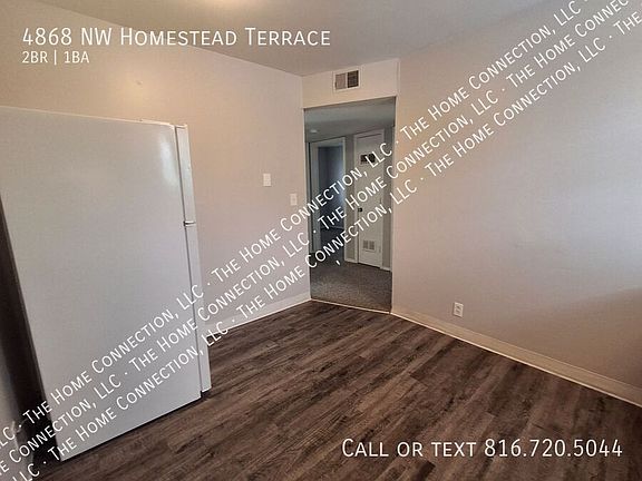 2 bed/1 bath, clean and ready for immediate occupancy! Features newer flooring, paint, and appliances. Offers in-unit washer/dryer hookup, garbage disposal, dishwasher, and off-street parking. Short walk from Homestead Park with playground, basketball, picnic tables, and walking trail. Great highway access and close to downtown KC and Parkville. --AAA Park Hill Schools! --No E-Tax $70/month utility fee covers water and trash pick up. Tenant responsible for gas and electric. Smoking strictly prohibited Small/medium pet considered with additional deposit The Home Connection, LLC