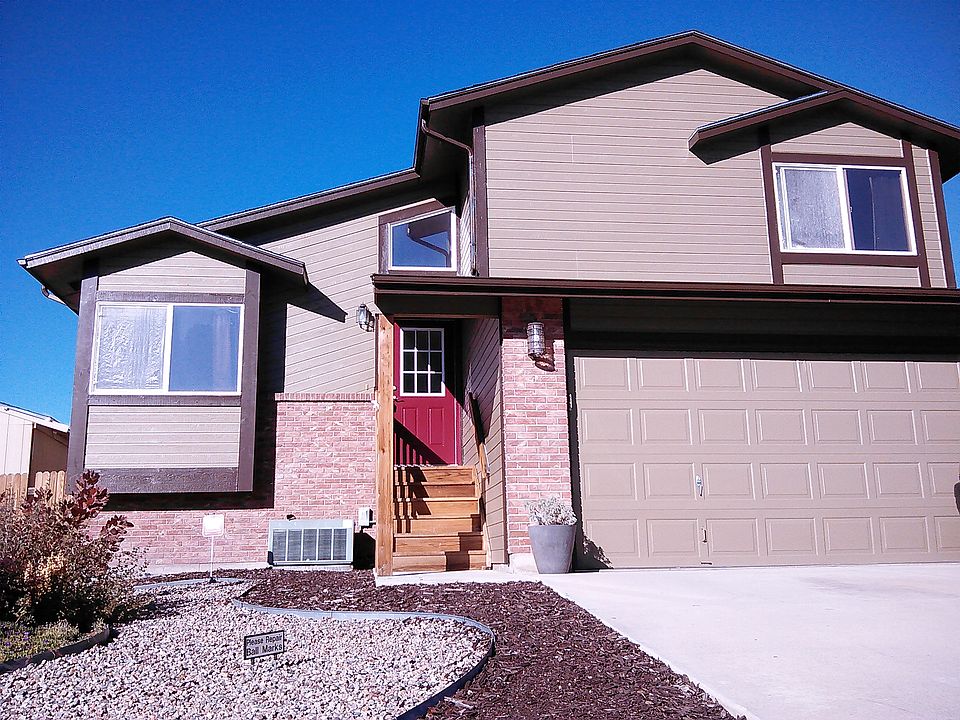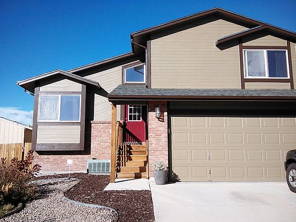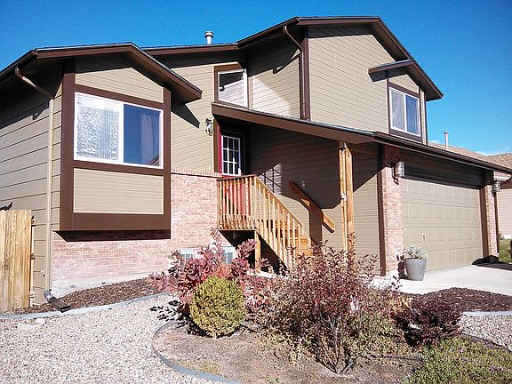 Excellent condition inside and outside. Only 15 minutes to Peterson AFB or Fort Carson. Complete view of mountain range from deck and patio. home has nice central air, tinted windows, hardwood floors through out, one 12x12 and 8x10 sheds, hot tube, sprinkler system, stainless steel appliances. very nice neighborhood.plenty of room in backyard, fireplace stub for future fireplace or wood stove. Corner lot. Cable installed in every room. Alarm system ready, ADTor Comcast. Lower composite deck. Vaulted ceiling