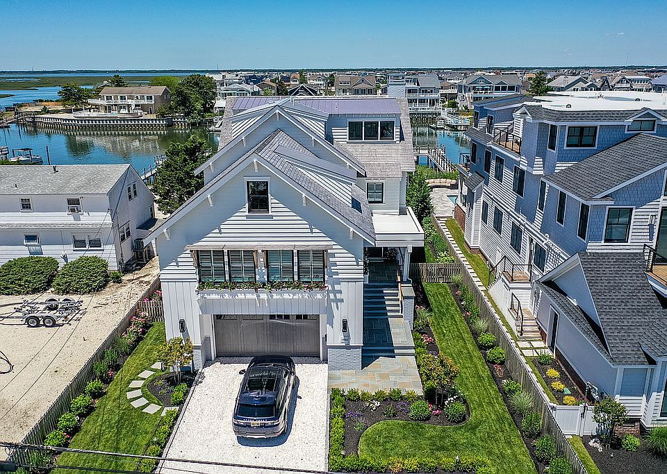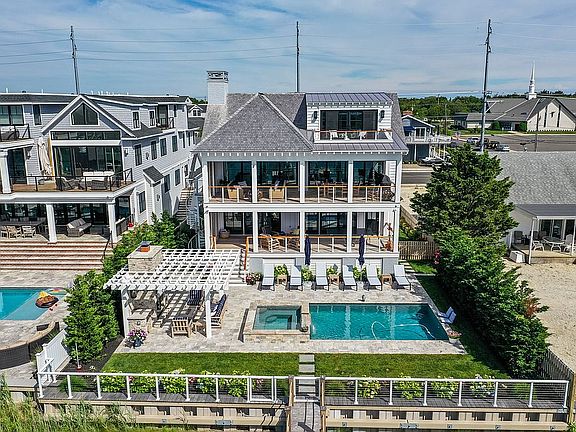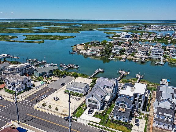 This Mark Asher designed, Winfield Developers constructed, and Megan Gorelick Interiors decorated Bayfront estate is surely one of the nicest Bayfront homes to ever hit the market on 7 Mile Island. Uncompromised luxury and meticulous detail are two phrases to describe this sprawling, 6,200 square foot home with six bedrooms, all with en-suite bathrooms. Situated on a 60' x 290', this expansive property sits six homes closer to the end of Fourth Avenue and offers over 22' more of high ground than the home that just sold at 4718 Ocean Drive. The extra high ground allows for more exterior entertaining space, more parking, a larger garage and, perhaps most importantly, approximately 1,000 square feet more living space than the property at 4718 Ocean Drive. The lot location closer to the end of Fourth Avenue allows for substantially better view corridors. The interior and exterior decor is a brilliant combination of modern and classic seashore design, with breathtaking spaces in every room. A three story foyer with gorgeous trim and bay views greets your guests immediately upon entering the front door. The rear family room is the perfect secondary entertaining space, with multiple seating areas, built in cabinetry, exquisite finishes, and beautiful bay views. This space offers slider access to a rear, covered deck that stretches across the entire backside of the home, has an exterior powder room, and overlooks a stunning pool area. Travertine pavers surround the pool and raised hot tub, and also serve as the foundation for an outdoor family room centered on a fireplace with a Sunbrite TV above, all with a pergola cover. This sensational space then walks down an Ipe pier with nautical rope rails to a fixed pier over the water, which is one of a few great spots to watch the sunset each night. Two large boat slips flank a floating dock. Back inside, the south side of the first floor closes off with a pocket door and offers two bedrooms, both with suite bathrooms. One of the bedrooms is a bunk room, while the other offers two twin beds. This becomes the perfect area of the home to let the kids or a visiting family stay. Up the stairs, you will find one of the more breathtaking entertaining spaces in Avalon. Aided by the extra deep lot, the living room, dining room and kitchen are all uniquely large and all offer wide spanning bay views through two walls of Solar Innovation lift and slide doors. The living room is centered on a floor to ceiling brick mantle, which is flanked by built in cabinetry and a beverage refrigerator. The chef's kitchen features Subzero and Wolf, appliances including a two zone wine refrigerator with beverage drawers underneath. A massive center island offers plenty of seating and quartzite countertops. Beyond the elegant dining space and through the lift and slide doors is the second floor deck, which offers beautiful bay views, automatic roll down screens, and spiral stair access down to the pool deck. The rear of the second floor offers three large bedrooms, all with en-suite bathrooms, and a powder room. One of the three rear bedrooms is currently set up as a gym. The third floor is entirely dedicated to the master suite, including the best views in the entire home. The master bathroom is exquisitely finished with a gorgeous tile package, double vanity, and a water closet. His and her closets are both oversized and built-in. A second laundry facility completes a very special third story. A four stop elevator, numerous zones of Sonos, a massive two car garage, an intricately designed landscaping package, and seemingly never-ending bay views make this Bayfront masterpiece an absolute must see. Schedule your appointment today.