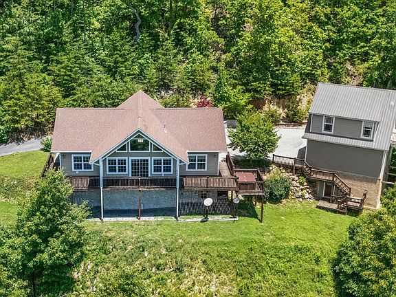 Custom Smoky Mountain Home with Breathtaking Views! Enjoy peaceful mountain living in this beautifully built 2-bedroom, 2-bath custom home on 2.76 acres with stunning panoramic views of the Smokies. Built in 2017, the main home offers easy one-level living, high-quality construction, and upscale finishes—featuring beautiful granite throughout, a spacious open layout, and abundant natural light. Designed for comfort and low-maintenance living, this home is perfect as a full-time residence or luxurious second home. Step outside to take in the sweeping views, relax in the included hot tub, or entertain on the generous outdoor space. A separate ADU (accessory dwelling unit) above the attached covered carport offers a private 1-bedroom, 1-bath suite—ideal for guests, multigenerational, extended family, or added rental income.