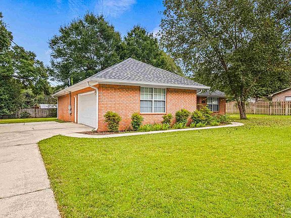 Welcome to this charming and serene dream home nestled in the heart of Milton. Situated on a spacious lot of .42 acres with a fully fenced yard and a delightful patio, this home is perfect for entertaining, relaxation, and enjoying the peaceful surroundings. Step inside to discover a well-designed floor plan that includes a formal dining room and a kitchen/dining combo. The inviting living room features a cozy wood-burning fireplace, ideal for gathering with family and friends on chilly evenings. The split floor plan offers optimal privacy, with a large master bedroom boasting a private bathroom. The master bathroom is complete with a garden tub, separate shower, dual sinks, a water closet, and a spacious walk-in closet. Two additional generously-sized bedrooms share a guest bathroom, ensuring comfort for family and guests. The kitchen and bathrooms feature beautiful oak cabinets, adding a touch of elegance to the home. Convenience is key with an inside laundry room (including washer and dryer), and a 2-car garage. Located in the highly sought-after Arcadia Mill area of Milton. Historic Arcadia encompasses 42 acres with 14 miles of nature trails. This home provides easy access to shopping, dining, parks, recreation, and Pensacola State College. Avalon Blvd and I-10 are conveniently close by. Recent improvements include a new roof in 2022, a new water heater in 2021, and a new HVAC system in 2021. The home also features a Rain Bird sprinkler system. There is no HOA, offering more freedom and flexibility. Plus, the seller is offering a 1-year Home Warranty for peace of mind. This meticulously cared for home has been lovingly maintained by its original owner and is now ready for its next chapter. Don't miss the opportunity to make this your own. Call today to schedule your private tour!