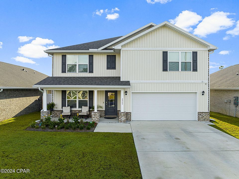 Back on market , buyers had an unplanned emergency! Welcome to this beautiful spacious 5 bed 3 bath home on a large lot in the premier subdivision, Liberty. Enjoy the gorgeous resort-style pool, Pavilion with grill area, playground and fitness center of this quiet neighborhood. You'll love this 2023 built two-story Hayden floor plan with 2556 sq ft offering you plenty of space. When entering the home you are covered by a front porch. A nice size flex room located just off the foyer is a great formal dining room or office. The kitchen is open to the breakfast/dining area and living room and has a center island, large corner walk-in pantry, an abundance of cabinets and counter space to included a custom built bar for coffee or entertaining. The stainless appliances include a fridge with ice maker, stove, dishwasher, and microwave. The breakfast/dining area off the kitchen leads to a large covered back patio. The huge fenced backyard , complete with fire pit, backs up to a wooded conservation area, providing more privacy. One bedroom is on the first floor in the back of the home with a bathroom next to it, making it ideal for your guests/visitors. On the second floor is the large en-suite master bedroom with a shower, soaking tub, double vanities, walk-in closet, and a private water closet. Three additional bedrooms, a den/bonus room, a third bathroom with double vanities, and the laundry room are also on the second floor. Home is upgraded with LVP throughout. minus one upstairs bedroom. This home has blinds throughout. Shelving in garage area will remain as well. All measurements are approximate buyer to verify if important.