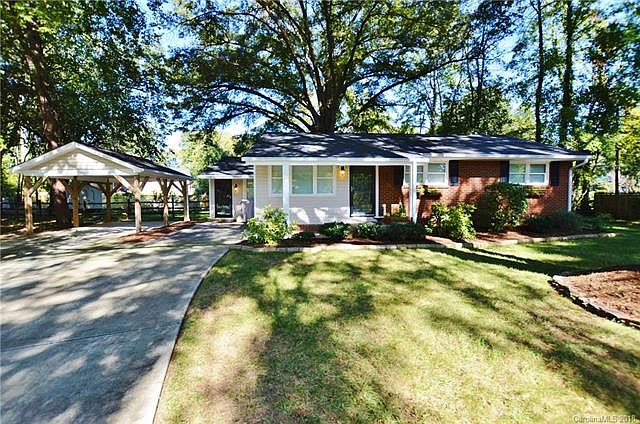 The curb appeal on this home is unreal!! As soon as you pull in to the cul-de-sac, this home grabs your attention. Gorgeous, mature trees with lush grass and landscaping. Brick ranch with a craftsman style carport, HUGE .36 acre lot with a fenced yard, storage shed and patio. Sunny living room, formal dining area, large kitchen. Recreation room/Office with extra storage space. Updated bathroom with tile, new vanity and tiled shower. Hardwood floors throughout. Seller says Roof / Craftsman Carport / Gutters / Siding / Windows & Driveway all done in 2010. HVAC - (Trane Gaspack) - November 2012. Major items done, put the finishing touches on it and make this home your own. Lot has beautiful, mature trees for morning shade in the front yard. Seconds to Park Road, Montford Drive entertainment, Southpark, Southend and a short drive to Uptown. This area is booming!