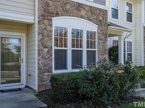 Showings begin 12/11. This NW Raleigh townhome offers updates, privacy and amenities too! Extra moldings in Entry & Dining room. Hardwood floors flow into updated Kitchen w/stainless steel appliances, granite counters & overhang to living room with a corner, gas fireplace & TV nook above it. Upstairs, the primary bedroom has a vaulted ceiling & both bedrooms have private baths and ample closets. Great views of private, wooded backyard. newer Gas furnace. Amenities inc. Exterior Maintenance, pool & more!