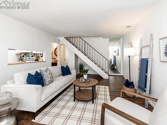 Step inside this 2-bedroom, 2-bathroom townhome and feel right at home. The bright, open living space is filled with natural light and flows seamlessly into the dining area. The kitchen stands out with crisp white cabinetry, butcher block countertops, and a colorful backsplash that adds personality. The main level features a convenient half bath and laundry combo, with washer and dryer included. Upstairs, you'll find two spacious bedrooms with plenty of closet space, along with a full bathroom. Additional highlights include an attached 1-car garage and central air conditioning for those warm summer days. Conveniently located, this townhome offers easy access to public transportation, shopping, dining, and entertainment—and it's just 3 miles from UCCS!