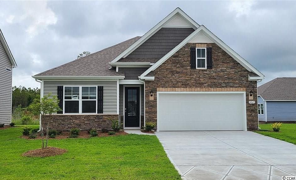Our Claiborne plan is the perfect one level home with a beautiful, open concept living area for entertaining. Stacked stone front elevation with arched entryway and 8ft. front door. The kitchen features granite countertops, an oversized island, 36" staggered cabinets, a walk-in pantry, and stainless Whirlpool appliances. The large owner's suite is tucked away at the back of the home, separated from the other bedrooms, with a double vanity and 5' shower in the master bath along with a huge walk-in closet and separate linen closet. Wide plank laminate floors run throughout the foyer, kitchen, living, and dining room with tile in all of the bathrooms and laundry room. Spacious covered rear porch adds additional outdoor living space with a fantastic water view! Ask about our Home Is Connected smart home package! This home is located in a new master-planned community by DR Horton in the popular St. James school district. Community offers pool, fitness room, open air pavilion/clubhouse, and food prep room by the pool, playgrounds, fishing dock in one of the many community lakes, sidewalk/walking trails throughout! Jump in the car and you’re less than 10 minutes to the beach or the shopping & restaurants nearby. Close to everything, but outside of the hustle and bustle! Pool & amenity center with workout room included in the cost of the HOA. Don’t just vacation here – live here! *Photos are of a similar Claiborne floorplan. (Home and community information, including pricing, included features, terms, availability and amenities, are subject to change and prior sale at any time without notice or obligation. Square footages are approximate. Pictures, photographs, colors, features, and sizes are for illustration purposes only and will vary from the homes as built. Equal housing opportunity builder.)